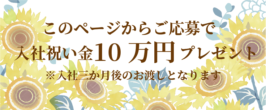 ひまわり訪問看護リハビリステーションでは、入社祝い金として入社3か月後に10万円をプレゼントするキャンペーンを開始しました。